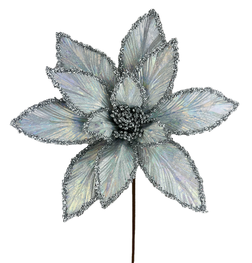 Iridescent Poinsettia Stem 24" by 12" Silver 86070SV