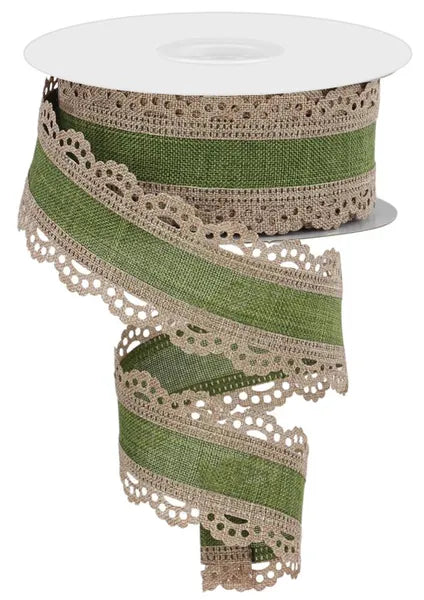 1.5"X10YD Light Beige Moss Lace Edge Royal Burlap Ribbon RGA15414M