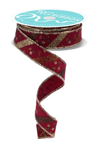 7/8"X10YD Wine Gold Brown Copper Glitter Stripe W/Confetti Dots Ribbon RGF799272