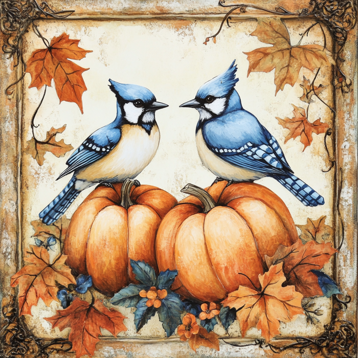 10" x 10" Fall Blue Jays & Pumpkins with Border Sign TTE-268