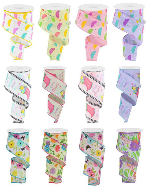 Spring Shower Ribbon Assortment White, Yellow, Pink, Lavender Set of 3